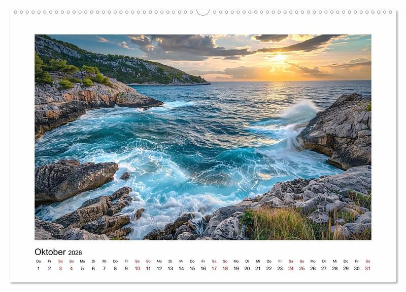 QUALITÄT - Hochwertiger Fotokalender mit 12 wunderschönen Motiven auf lichtbeständigem Bilderdruckpapier, robuste Spiralbindung mit Aufhängebügel.NACHHALTIG - deutliche Abfallreduzierung durch bedarfsgerechte Einzelstückfertigung, umweltfreundliches FSC-zertifiziertes Papier, Produktion in Deutschland, klimabewusste Logistik.PERFEKTES GESCHENK - Kalender für Freunde und Familie, für Kinder und Erwachsene, jung und alt, zu Weihnachten, Geburtstag oder zwischendurch.VIELFALT - Bildkalender in verschiedenen Formaten, z.B. DIN A5, DIN A4, DIN A3 sowie DIN A2. Ob Naturmotiv, Gemälde oder Fotos, ideal für ein persönliches Wohlfühlambiente.Wellen, Sand und Felsen - KI generiert von Autor(in): Catill
