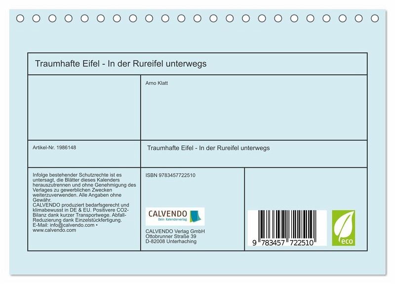 QUALITÄT - Hochwertiger Fotokalender mit 12 wunderschönen Motiven auf lichtbeständigem Bilderdruckpapier, robuste Spiralbindung.NACHHALTIG - deutliche Abfallreduzierung durch bedarfsgerechte Einzelstückfertigung, umweltfreundliches FSC-zertifiziertes Papier, Produktion in Deutschland, klimabewusste Logistik.PERFEKTES GESCHENK - Kalender für Freunde und Familie, für Kinder und Erwachsene, jung und alt, zu Weihnachten, Geburtstag oder zwischendurch.VIELFALT - Bildkalender in verschiedenen Formaten, z.B. DIN A5, DIN A4, DIN A3 sowie DIN A2. Ob Naturmotiv, Gemäldeoder Fotos, ideal für ein persönliches Wohlfühlambiente.Am Rursee und Umgebung unterwegs von Autor(in): Arno Klatt