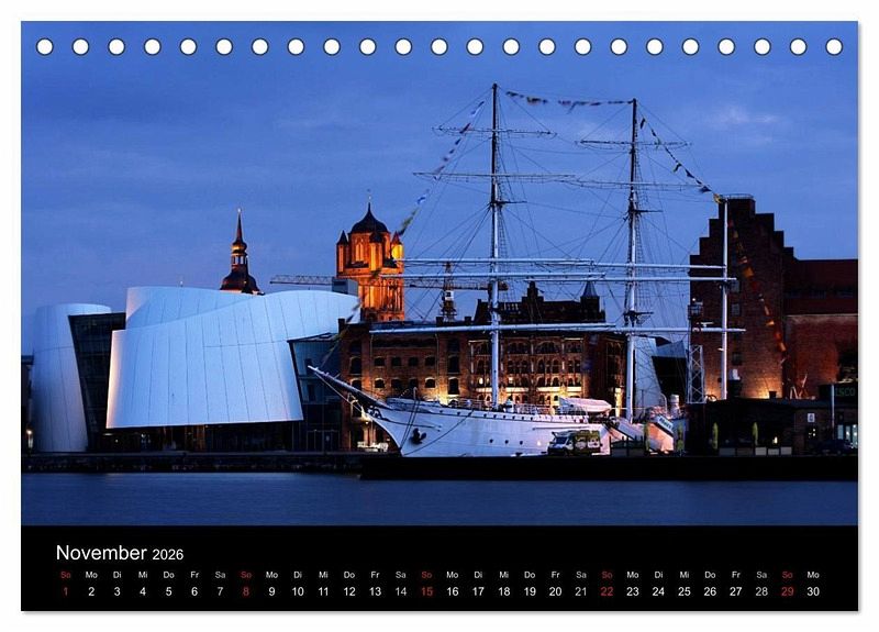 Traumhafte Ostseeküste - In 12 wunderschönen Bildern entführen wir Sie an die Küste. Entdecken Sie Stralsund mit der Gorch Fock oder dem Ozeaneum. Tauchen Sie ein in die grünen Alleen oder entspannen Sie am Strand in Ahrenhoop.