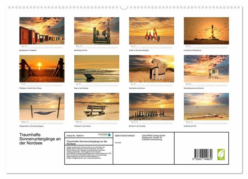 Romantisch, faszinierend und immer wieder wunderschön. So sind die Sonnenuntergänge an der Nordseeküste. Lassen Sie sich mit 12 Motiven verzaubern und träumen Sie ein ganzes Jahr von der Schönheit der Nordsee.