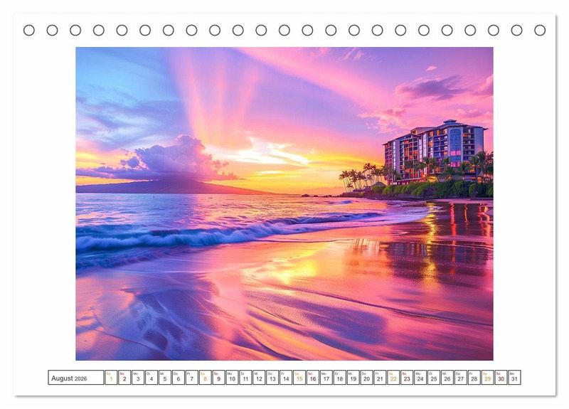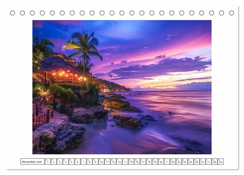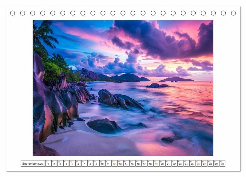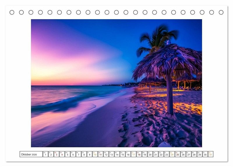 Tauchen Sie ein in eine Oase der Ruhe, wo der goldene Sand zwischen Ihren Zehen kitzelt und das türkisblaue Wasser zum Träumen einlädt. Lassen Sie den Alltag hinter sich und erleben Sie Momente voller Freiheit und unbeschwerter Leichtigkeit. Alle hier gezeigten Bilder wurden mit Sorgfalt, Liebe und mit Hilfe einer KI generiert. Abschließend werden sie mit Bildbearbeitungsprogrammen überarbeitet und in den Kalender eingefügt.
