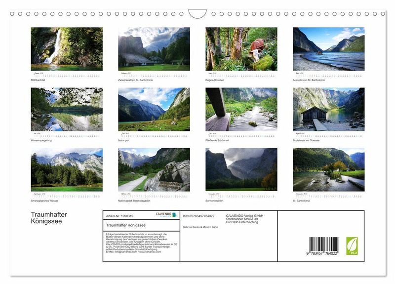 QUALITÄT - Hochwertiger Fotokalender mit 12 wunderschönen Motiven auf lichtbeständigem Bilderdruckpapier, robuste Spiralbindung mit Aufhängebügel.NACHHALTIG - deutliche Abfallreduzierung durch bedarfsgerechte Einzelstückfertigung, umweltfreundliches FSC-zertifiziertes Papier, Produktion in Deutschland, klimabewusste Logistik.PERFEKTES GESCHENK - Kalender für Freunde und Familie, für Kinder und Erwachsene, jung und alt, zu Weihnachten, Geburtstag oder zwischendurch.VIELFALT - Bildkalender in verschiedenen Formaten, z.B. DIN A5, DIN A4, DIN A3 sowie DIN A2. Ob Naturmotiv, Gemälde oder Fotos, ideal für ein persönliches Wohlfühlambiente.Sommerlicher Königs- und Obersee des Berchtesgadener Landes von Autor(in): Sabrina Sierks