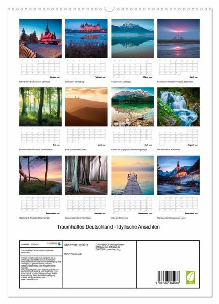 PREMIUM-LINIE - Brillanter Fotokalender mit 12 wunderschönen Motiven, Kunstdruck in Hochglanz in Museumsqualität.QUALITÄT - edle Materialien, stabile Rückwand mit 2 innovativen Einstecktaschen für eine optimale Präsentation an der Wand.NACHHALTIG - deutliche Abfallreduzierung durch bedarfsgerechte Einzelstückfertigung, umweltfreundliches FSC-zertifiziertes Papier, Produktion in Deutschland, klimabewusste Logistik.PERFEKTES GESCHENK - Kalender für Freunde und Familie, für Kinder und Erwachsene, jung und alt, zu Weihnachten, Geburtstagoder zwischendurch.Malerische Landschaften in Deutschland von Autor(in): Martin Wasilewski