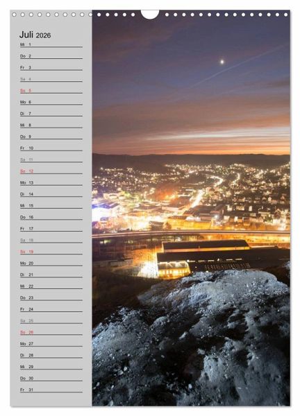 Gewinnen Sie neue Eindrücke einer historischen Bergbau- und Industrieregion mit Charme, dem Siegerland. Am Oberlauf der Sieg befindet sich diese spannungsvolle Region, die trotz einer stetigen Erneuerung den Wiedererkennungswert einer altehrwürdigen Montanregion behalten konnte. Dieser Planer dokumentiert anhand von ausgewählten Motiven, die auch zum Träumen einladen sollen, den einzigartigen Charakter dieser Region. Betrachten Sie eine unverwechselbar Mischung aus romantischer Natur des Rheinischen Schiefergebirges, gebauter Geschichte und urbanen Panoramen.