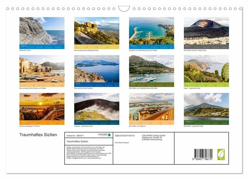 QUALITÄT - Hochwertiger Fotokalender mit 12 wunderschönen Motiven auf lichtbeständigem Bilderdruckpapier, robuste Spiralbindung mit Aufhängebügel.NACHHALTIG - deutliche Abfallreduzierung durch bedarfsgerechte Einzelstückfertigung, umweltfreundliches FSC-zertifiziertes Papier, Produktion in Deutschland, klimabewusste Logistik.PERFEKTES GESCHENK - Kalender für Freunde und Familie, für Kinder und Erwachsene, jung und alt, zu Weihnachten, Geburtstag oder zwischendurch.VIELFALT - Bildkalender in verschiedenen Formaten, z.B. DIN A5, DIN A4, DIN A3 sowie DIN A2. Ob Naturmotiv, Gemälde oder Fotos, ideal für ein persönliches Wohlfühlambiente.Die wunderschönsten Orte von Sizilien von Autor(in): Stina Mydzyn