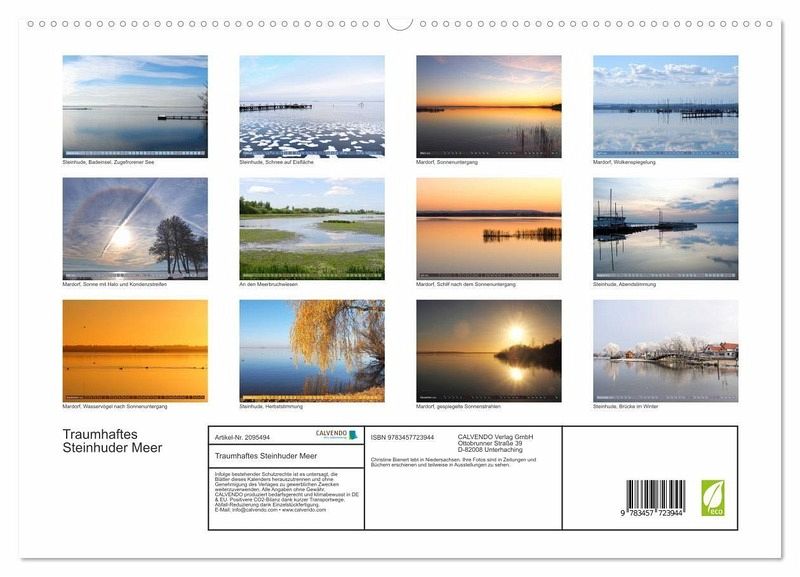 PREMIUM-LINIE - Brillanter Fotokalender mit 12 wunderschönen Motiven, Kunstdruck in Hochglanz in Museumsqualität.QUALITÄT - edle Materialien, stabile Rückwand mit 2 innovativen Einstecktaschen für eine optimale Präsentation an der Wand.NACHHALTIG - deutliche Abfallreduzierung durch bedarfsgerechte Einzelstückfertigung, umweltfreundliches FSC-zertifiziertes Papier,Produktion in Deutschland, klimabewusste Logistik.PERFEKTES GESCHENK - Kalender für Freunde und Familie, für Kinder und Erwachsene, jung und alt, zu Weihnachten, Geburtstag oder zwischendurch.Stimmungsvolle Fotos vom Steinhuder Meer von Autor(in): Christine Bienert