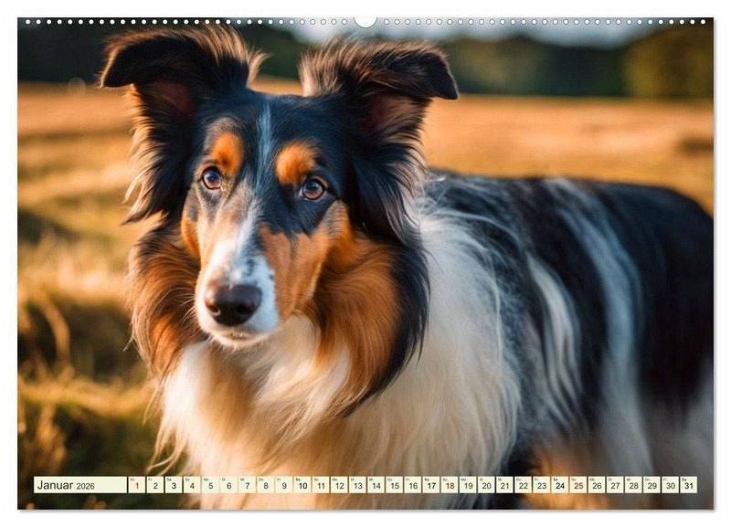 Der Collie ist eine Hunderasse mit elegantem Erscheinungsbild. Sie haben eine schlanke, muskulöse Statur und langes, seidiges Fell. Bekannt sind sie für ihre Intelligenz, Freundlichkeit und Anhänglichkeit gegenüber ihren Besitzern. Der Familienhund benötigt regelmäßige Bewegung und geistige Stimulation, um glücklich und gesund zu bleiben. Weltweit bekannt wurde die Rasse durch Lassie, den intelligenten Filmhund in den 50er bis 70er Jahren. Mithilfe der KI wurde die wunderschöne Rasse ansprechend in Szene gesetzt.