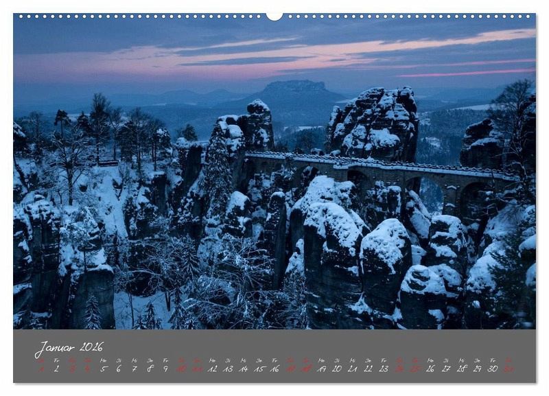 Die Sächsische Schweiz ist einer der schönsten Nationalparks Deutschlands. Eine Reise in die zauberhafte Sandsteinwelt lohnt sich zu jeder Jahreszeit. Der Bildkalander soll Ihnen Lust auf die wunderschöne Landschaft bieten.