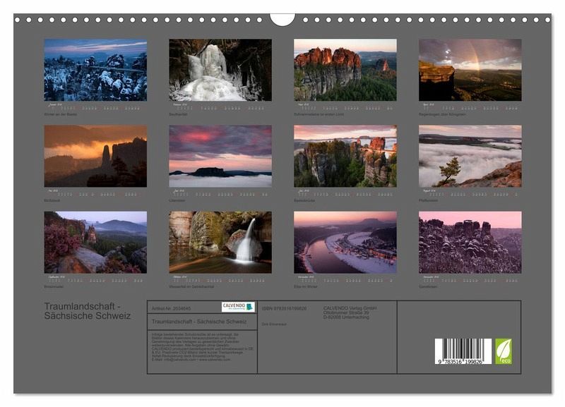 Die Sächsische Schweiz ist einer der schönsten Nationalparks Deutschlands. Eine Reise in die zauberhafte Sandsteinwelt lohnt sich zu jeder Jahreszeit. Der Bildkalander soll Ihnen Lust auf die wunderschöne Landschaft bieten.