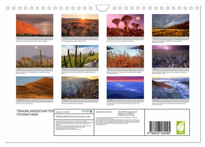 QUALITÄT - Hochwertiger Fotokalender mit 12 wunderschönen Motiven auf lichtbeständigem Bilderdruckpapier, robuste Spiralbindung mit Aufhängebügel.NACHHALTIG - deutliche Abfallreduzierung durch bedarfsgerechte Einzelstückfertigung, umweltfreundliches FSC-zertifiziertes Papier, Produktion in Deutschland, klimabewusste Logistik.PERFEKTES GESCHENK - Kalender für Freunde und Familie, für Kinder und Erwachsene, jung und alt, zu Weihnachten, Geburtstag oder zwischendurch.VIELFALT - Bildkalender in verschiedenen Formaten, z.B. DIN A5, DIN A4, DIN A3 sowie DIN A2. Ob Naturmotiv, Gemälde oder Fotos, ideal für ein persönliches Wohlfühlambiente.Landschaften der Welt von Autor(in): Christian Heeb