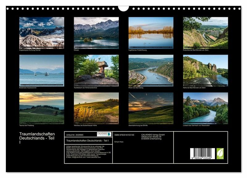 Es ist schier unmöglich, mit einem Monats-Kalender alle traumhaft schönen Landstriche Deutschlands zu erfassen. Dennoch hier eine Auswahl, mit Schwerpunkten im Süden und Westen unseres Landes. Eine Sammlung von herrlichen landschaftlichen Motiven, professionell fotografiert und in bester Qualität präsentiert. (Teil I, Querformat)