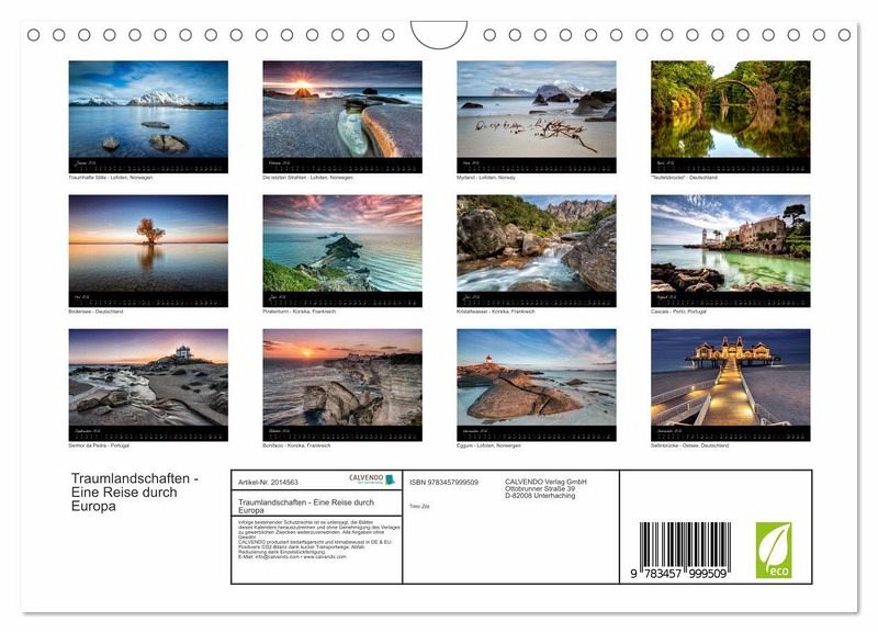 In diesem Kalender sind einzigartige Landschaften aus ganz Europa zu sehen. Von den wunderbaren Lofoten in Norwegen bis hin zu den Küsten Portugals und Korsika, sowie ein paar Highlights aus Deutschland.