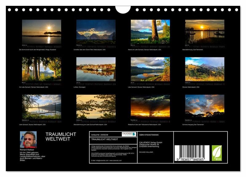 QUALITÄT - Hochwertiger Fotokalender mit 12 wunderschönen Motiven auf lichtbeständigem Bilderdruckpapier, robuste Spiralbindung mit Aufhängebügel.NACHHALTIG - deutliche Abfallreduzierung durch bedarfsgerechte Einzelstückfertigung, umweltfreundliches FSC-zertifiziertes Papier, Produktion in Deutschland, klimabewusste Logistik.PERFEKTES GESCHENK - Kalender für Freunde und Familie, für Kinder und Erwachsene, jung und alt, zu Weihnachten,Geburtstag oder zwischendurch.VIELFALT - Bildkalender in verschiedenen Formaten, z.B. DIN A5, DIN A4, DIN A3 sowie DIN A2. Ob Naturmotiv, Gemälde oder Fotos, ideal für ein persönliches Wohlfühlambiente.Ein Kalender für alle, die Bilder zum Träumen lieben. von Autor(in): Richard Walliser