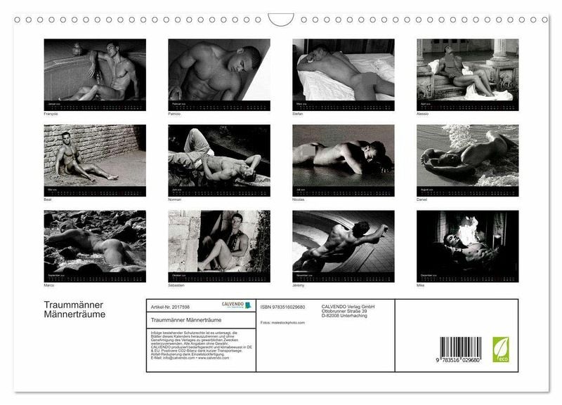 In diesem Kalender geben dreizehn träumende Traummänner ihr Stelldichein. In ruhigen und dahinfliessenden ästhetischen Schwarzweissbildern wird der Schönheit des ruhenden Männerkörpers gehuldigt und gleichzeitig wieder einmal der traditionellen Schwarzweissfotografie eine Referenz erwiesen. Dank des Querformats entfalten diese Fotografien eine einzigartige Wirkung.