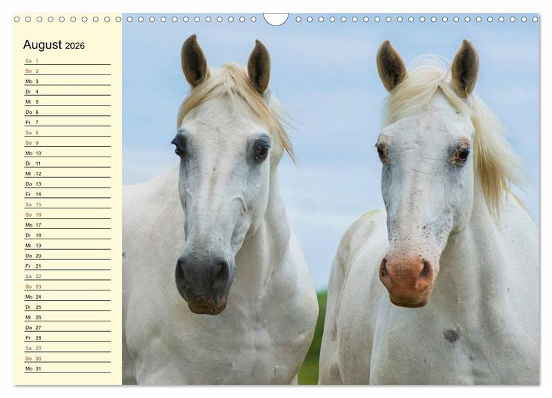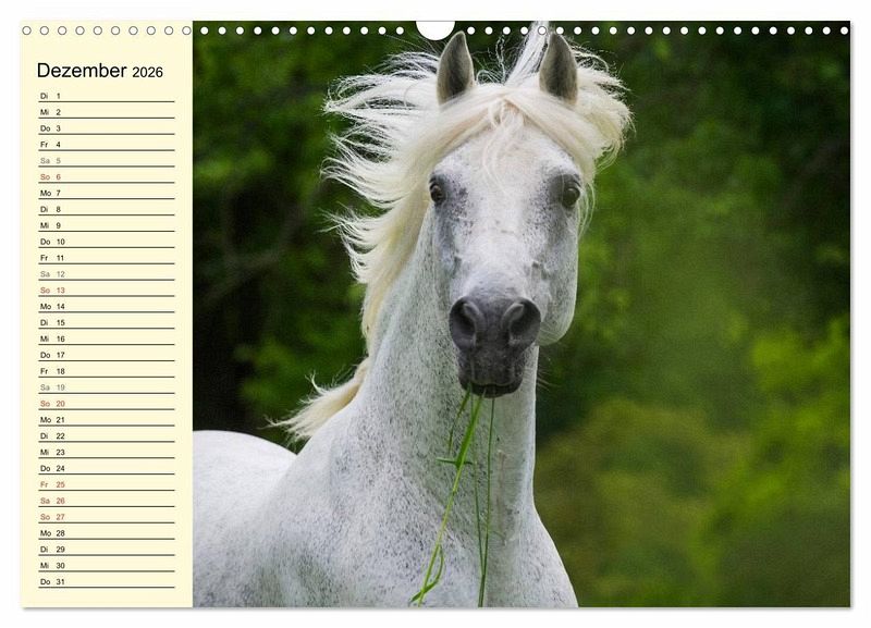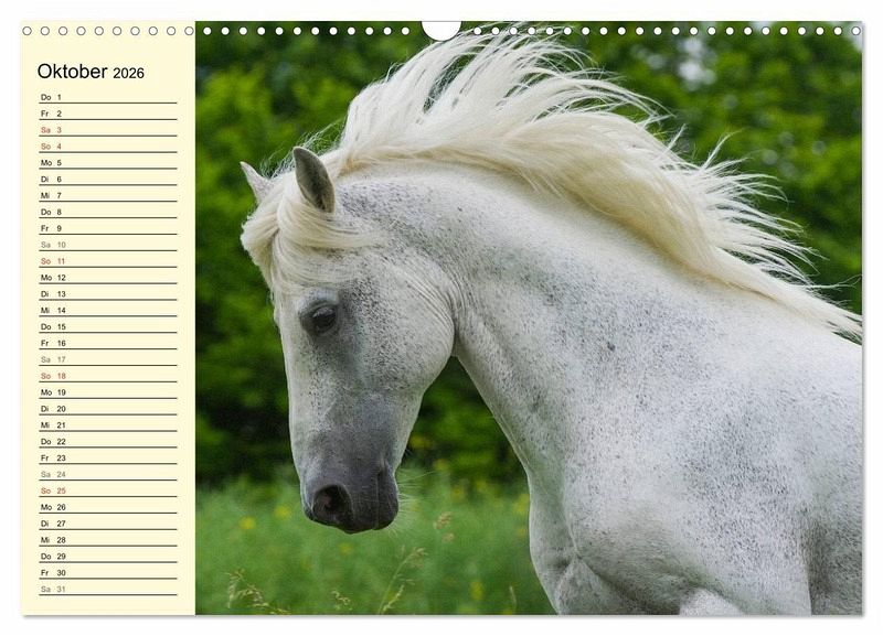 Wer kennt sie nicht, die schneeweißen Hengste der Spanischen Hofreitschule in Wien. In diesem Kalender zeigt Ihnen die Tierfotografin Sigrid Starick Hengste und Stuten auf der Weide in 12 traumhaft schönen Fotos. Lassen Sie sich verzaubern von der Schönheit dieser Pferde und durch ein ganzes Jahr begleiten.