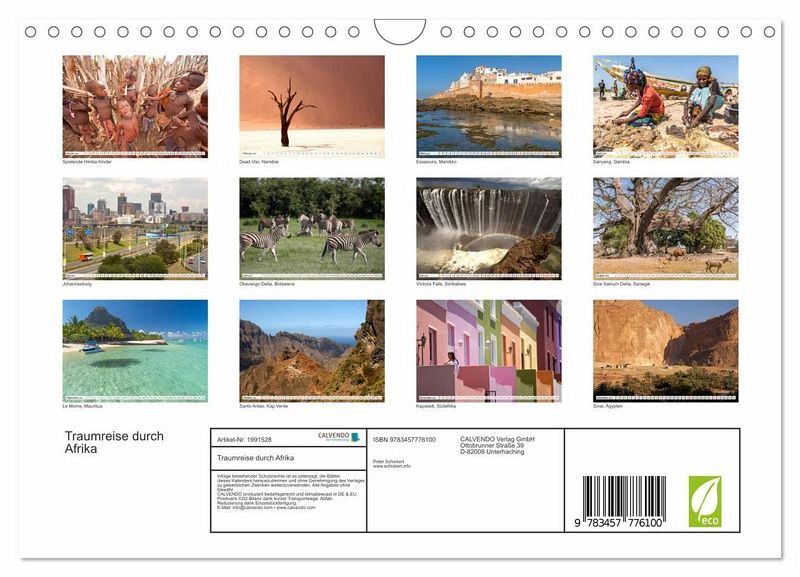 Von Marokko bis nach Südafrika und von den Kapverden bis Mauritius, Menschen, Kultur und natürlich viel Natur aus Afrika in einem wunderbaren Kalender vom Reisefotografen Peter Schickert.