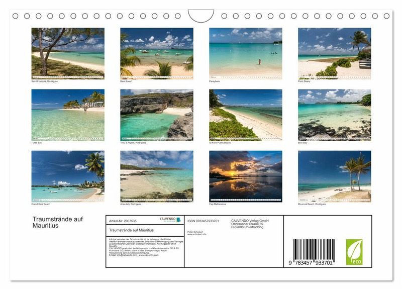 Dieser Kalender vom Reisefotografen Peter Schickert zeigzt zwölf der schönsten Strämde dieses Inselparadieses im Indischen Ozean.