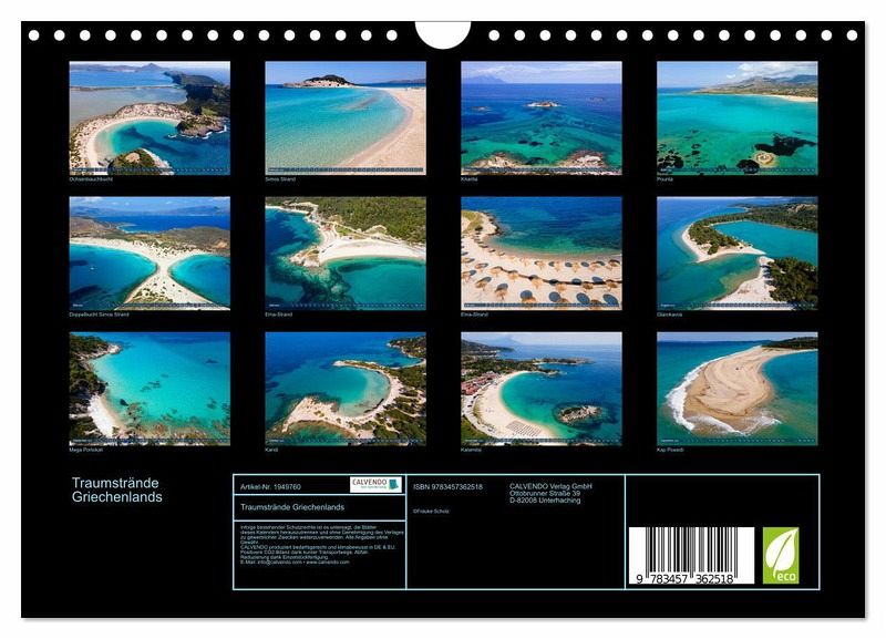 Dieser Griechenlandkalender nimmt euch mit zu den wunderschönen griechischen Stränden. Taucht ein in das türkisfarbene Meer. Holt euch Griechenlands Natur nach Hause. Diese hochwertigen Fotos verschönern die eigenen vier Wände, das Büro und mehr. Darüber hinaus ist der Kalender die perfekte Geschenkidee für alle Strand- und Griechenlandfans.