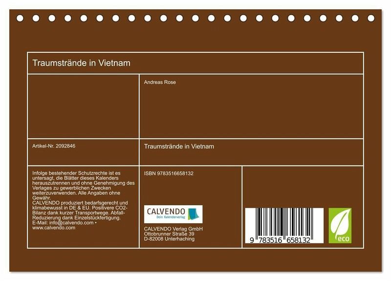 QUALITÄT - Hochwertiger Fotokalender mit 12 wunderschönen Motiven auf lichtbeständigem Bilderdruckpapier, robuste Spiralbindung.NACHHALTIG - deutliche Abfallreduzierung durch bedarfsgerechte Einzelstückfertigung, umweltfreundliches FSC-zertifiziertes Papier, Produktion in Deutschland, klimabewusste Logistik.PERFEKTES GESCHENK - Kalender für Freunde und Familie, für Kinder und Erwachsene, jung und alt, zu Weihnachten, Geburtstag oder zwischendurch.VIELFALT - Bildkalender in verschiedenen Formaten, z.B. DIN A5, DIN A4, DIN A3 sowie DIN A2. Ob Naturmotiv, Gemälde oder Fotos, ideal für ein persönliches Wohlfühlambiente.Traumhafte Strände Vietnams von Autor(in): Andreas Rose