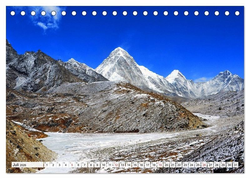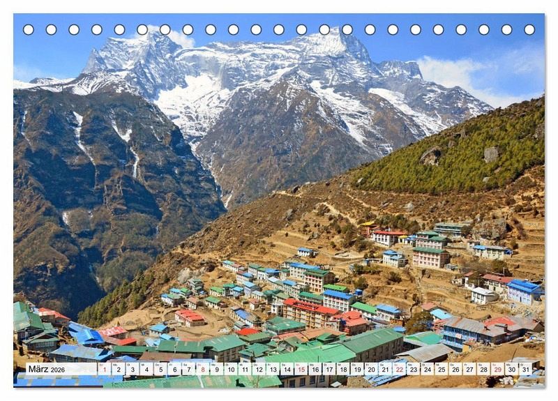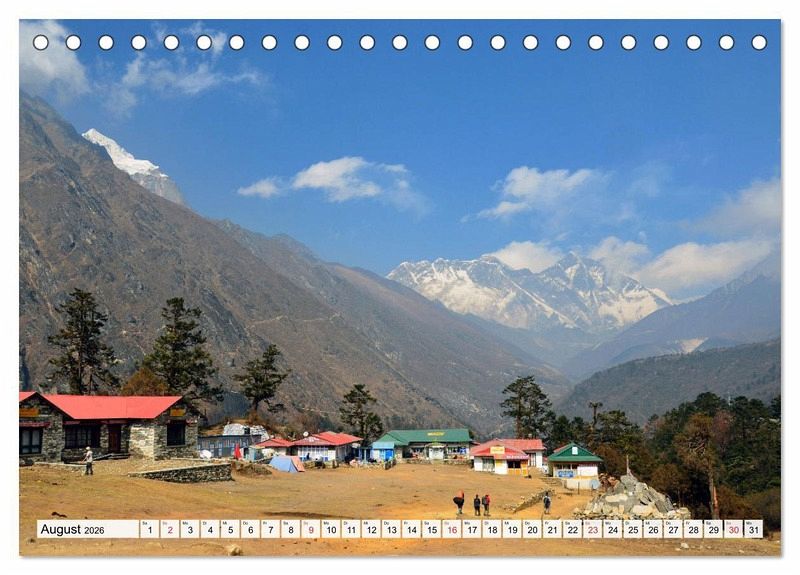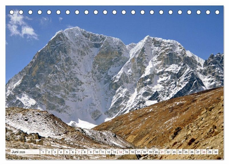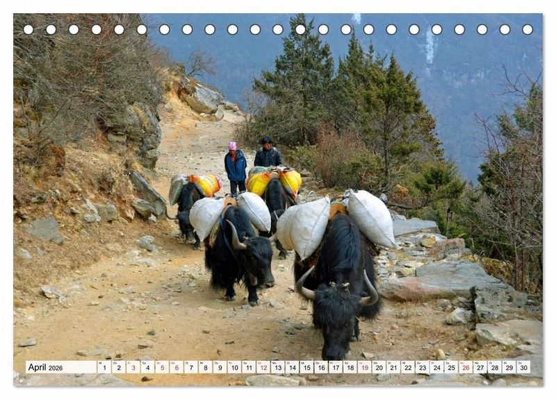 Die fantastische Landschaft des Himalaya lockt immer wieder viele Bergtouristen nach Nepal. Acht der insgesamt vierzehn Achttausender befinden sich in dem kleinen Land mit seinen freundlichen Bewohnern, einer langen Geschichte und großartigen Baudenkmälern. Der Autor besuchte viele Male das Land und machte Trekkingtouren in die verschiedensten Regionen des Himalaya. Die eindrucksvollen im Kalender gezeigten Fotos entstanden während einer rund 200 km langen Tour, die in Jiri, auf 2000 m Höhe im Solu Khumbu begann, in die unmittelbare Nähe zum Everest weit oberhalb der 5000er Marke führte und am berühmten Tenzing-Hillary Airport von Lukla endete.