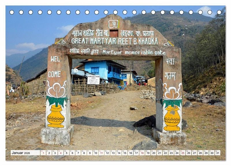 Januar: Das Eingangstor zum Dorf Kinja im Solu Khumbu am Anfang des Treks auf 1630 m Höhe