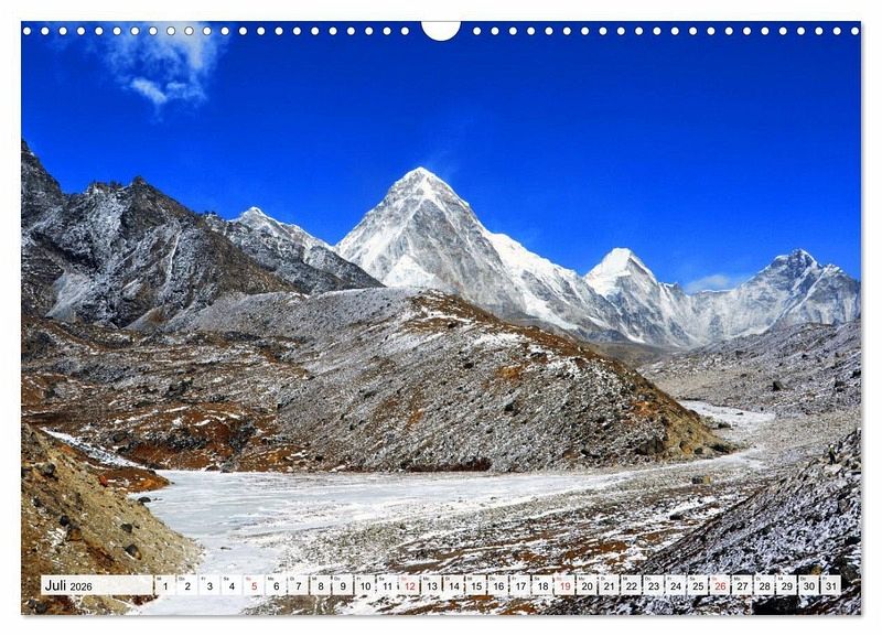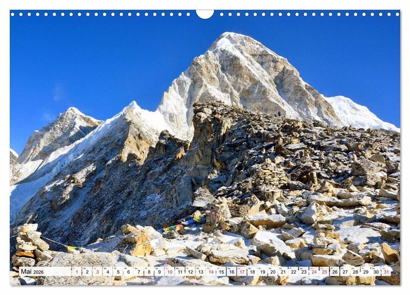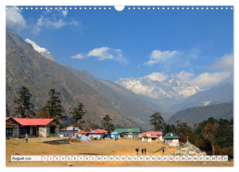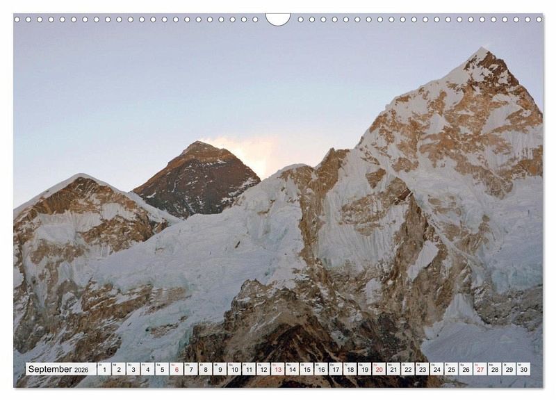 Die fantastische Landschaft des Himalaya lockt immer wieder viele Bergtouristen nach Nepal. Acht der insgesamt vierzehn Achttausender befinden sich in dem kleinen Land mit seinen freundlichen Bewohnern, einer langen Geschichte und großartigen Baudenkmälern. Der Autor besuchte viele Male das Land und machte Trekkingtouren in die verschiedensten Regionen des Himalaya. Die eindrucksvollen im Kalender gezeigten Fotos entstanden während einer rund 200 km langen Tour, die in Jiri, auf 2000 m Höhe im Solu Khumbu begann, in die unmittelbare Nähe zum Everest weit oberhalb der 5000er Marke führte und am berühmten Tenzing-Hillary Airport von Lukla endete.