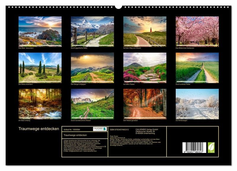 PREMIUM-LINIE - Brillanter Fotokalender mit 12 wunderschönen Motiven, Kunstdruck in Hochglanz in Museumsqualität.QUALITÄT - edle Materialien, stabile Rückwand mit 2 innovativen Einstecktaschen für eine optimale Präsentation an der Wand.NACHHALTIG - deutliche Abfallreduzierung durch bedarfsgerechte Einzelstückfertigung, umweltfreundliches FSC-zertifiziertes Papier, Produktion in Deutschland, klimabewusste Logistik.PERFEKTES GESCHENK - Kalender für Freunde und Familie, für Kinder und Erwachsene, jung und alt, zu Weihnachten, Geburtstag oder zwischendurch.Traumwege entdecken - Erholung für Seele, Körper und Geist. von Autor(in): Peter Roder