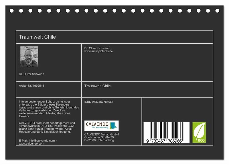 QUALITÄT - Hochwertiger Fotokalender mit 12 wunderschönen Motiven auf lichtbeständigem Bilderdruckpapier, robuste Spiralbindung.NACHHALTIG - deutliche Abfallreduzierung durch bedarfsgerechte Einzelstückfertigung, umweltfreundliches FSC-zertifiziertes Papier, Produktion in Deutschland, klimabewusste Logistik.PERFEKTES GESCHENK - Kalender für Freunde und Familie, für Kinder und Erwachsene, jung und alt, zu Weihnachten, Geburtstag oder zwischendurch.VIELFALT - Bildkalender in verschiedenen Formaten, z.B. DIN A5, DIN A4, DIN A3 sowie DIN A2. Ob Naturmotiv, Gemälde oder Fotos, ideal für ein persönliches Wohlfühlambiente.Traumwelt Chile von Autor(in): Oliver Schwenn