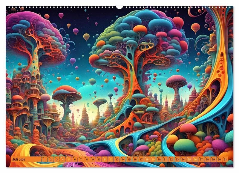 Träumen Sie von surrealen Landschaften, dann ist dieser Kalender genau das Richtige für Sie. Erleben Sie eine Welt voller fantastischer und faszinierender Bilder, die von künstlicher Intelligenz geschaffen wurden. Jeder Monat enthüllt ein neues Meisterwerk, das Ihre Fantasie beflügeln wird, lassen Sie sich von den Bildern verzaubern. Dieser Kalender ist nicht nur ein Muss für Kunstliebhaber, sondern auch das perfekte Geschenk für jeden, der sich für die Grenzen der Realität interessiert.