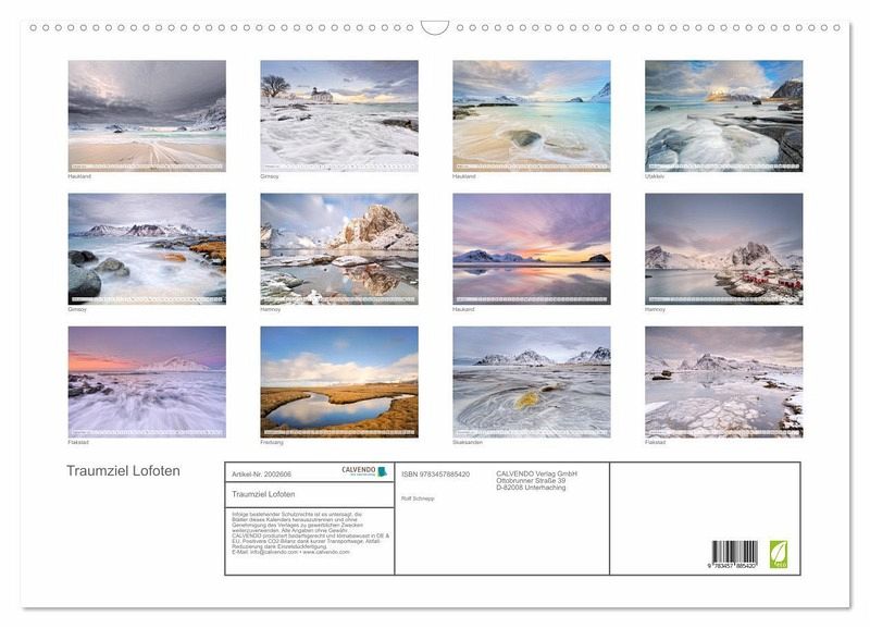 QUALITÄT - Hochwertiger Fotokalender mit 12 wunderschönen Motiven auf lichtbeständigem Bilderdruckpapier, robuste Spiralbindung mit Aufhängebügel.NACHHALTIG - deutliche Abfallreduzierung durch bedarfsgerechte Einzelstückfertigung, umweltfreundliches FSC-zertifiziertes Papier, Produktion in Deutschland, klimabewusste Logistik.PERFEKTES GESCHENK - Kalender für Freunde und Familie, für Kinder und Erwachsene, jung und alt, zu Weihnachten, Geburtstag oder zwischendurch.VIELFALT - Bildkalender in verschiedenen Formaten, z.B. DIN A5, DIN A4, DIN A3 sowie DIN A2. Ob Naturmotiv, Gemälde oder Fotos, ideal für ein persönliches Wohlfühlambiente.Die Lofoten - lassen sie sich vom arktischen Licht verzaubern! von Autor(in): Rolf Schnepp