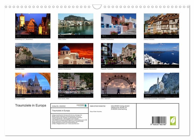 QUALITÄT - Hochwertiger Fotokalender mit 12 wunderschönen Motiven auf lichtbeständigem Bilderdruckpapier, robuste Spiralbindung mit Aufhängebügel.NACHHALTIG - deutliche Abfallreduzierung durch bedarfsgerechte Einzelstückfertigung, umweltfreundliches FSC-zertifiziertes Papier, Produktion in Deutschland, klimabewusste Logistik.PERFEKTES GESCHENK - Kalender für Freunde und Familie, für Kinder und Erwachsene, jung und alt, zu Weihnachten, Geburtstag oder zwischendurch.VIELFALT - Bildkalender in verschiedenen Formaten, z.B. DIN A5, DIN A4, DIN A3 sowie DIN A2. Ob Naturmotiv, Gemälde oder Fotos, ideal für ein persönliches Wohlfühlambiente.Europas touristische Highlights von Autor(in): Klaus-Peter Huschka