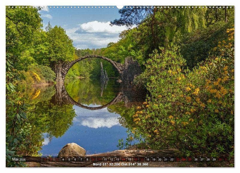 Mai: Kromlau, Rakotzbrücke im Rhododendronpark