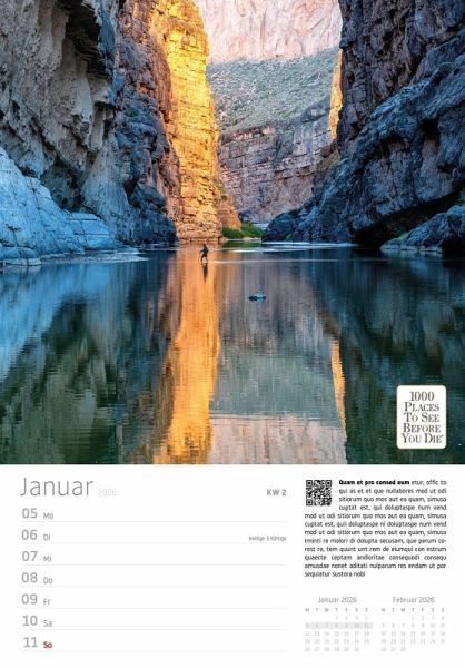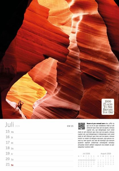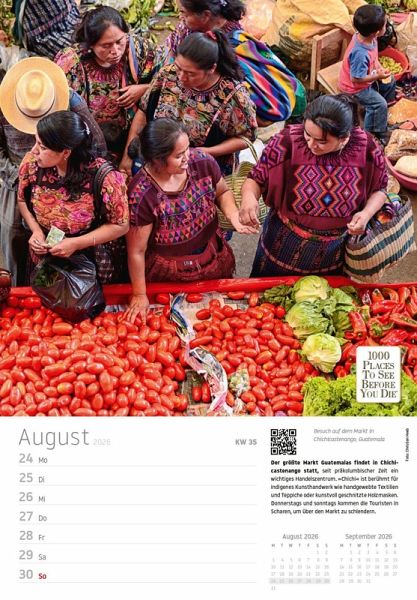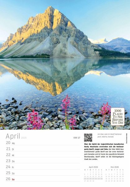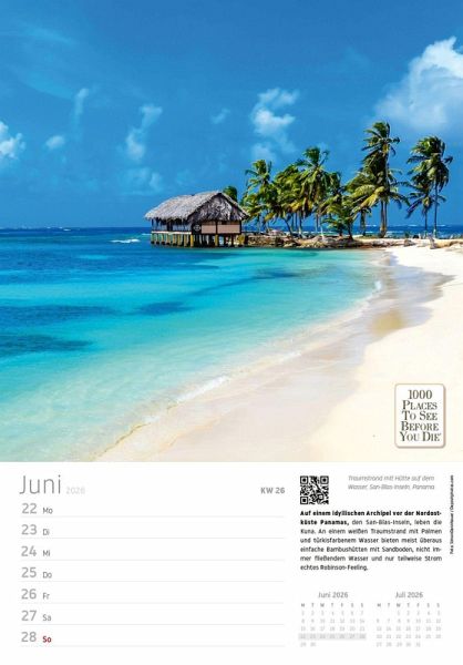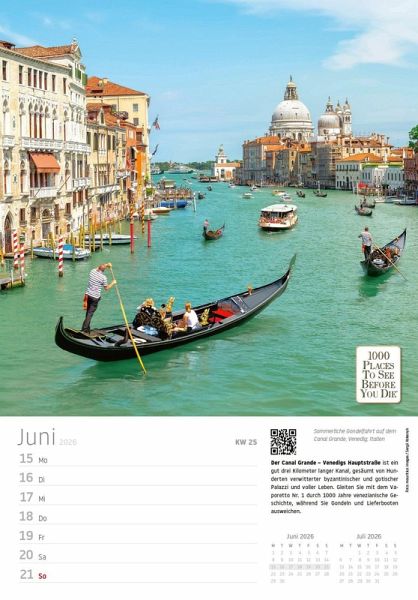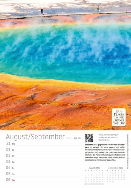 Begeben Sie sich jede Woche auf eine neue Reise zu den spektakulärsten Orten der Welt - mit dem "Traumziele" Wochenkalender 2026 aus dem renommierten Vista Point Verlag. Basierend auf dem weltberühmten Bestseller "1000 Places To See Before You Die", bietet dieser Kalender 53 atemberaubende Fotografien von faszinierenden Städten, Traumstränden und legendären Kultstätten.