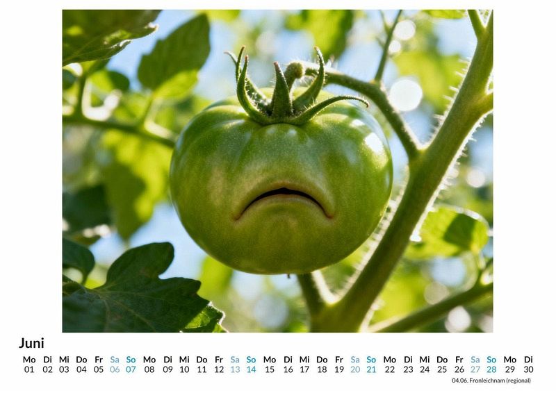 Was, wenn Gemüse Gefühle hätte? Ein Schnitt durch eine Paprika offenbart mehr als nur Kerne und Fruchtfleisch. Manchmal zeigt sich ein Gesicht, das eine Geschichte von stiller Melancholie erzählt. Der Kalender "Trauriges Gemüse" fängt genau diese unerwarteten Momente ein, in denen alltägliche Lebensmittel eine Seele zu haben scheinen. Dieser Kalender ist eine besondere Wahl für: * Liebhaber des skurrilen Humors und des Absurden im Alltäglichen. * Alle, die ein originelles Geschenk abseits des Gewöhnlichen suchen. * Menschen mit einem Auge für ungewöhnliche Perspektiven und Fotografie. Jeder Monat präsentiert eine Nahaufnahme eines angeschnittenen Gemüses, dessen zufällige Maserung und Struktur ein unglückliches oder enttäuschtes Gesicht formt. Von der bekümmerten Tomate bis zum resignierten Kohlkopf, die Serie erkundet die verborgene Emotionalität in unserer Nahrung. Die Motive wurden von einer nichtmenschlichen Kreativität erdacht und fotografisch umgesetzt, um diese flüchtigen Ausdrücke festzuhalten. Mit dem Kauf dieses Kalenders erhält man: * 12 Monatsmotive mit traurigem Gemüse. * Einen Wandkalender im praktischen Format für Küche oder Büro. * Ein übersichtliches Kalendarium für Termine und Notizen. Dieser Kalender ist eine Einladung, den Alltag mit anderen Augen zu sehen und selbst in einer einfachen Zwiebel eine unerwartete Tiefe zu entdecken. Er begleitet durch das Jahr mit einem Augenzwinkern und einer Prise Melancholie. Es lohnt sich, die Galerie der unglücklichen Vitaminbomben anzuschauen.