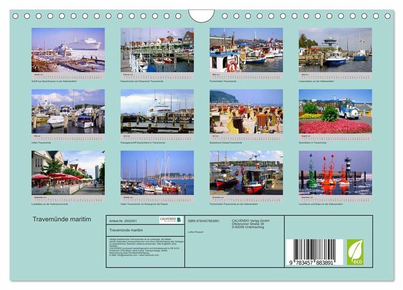 QUALITÄT - Hochwertiger Fotokalender mit 12 wunderschönen Motiven auf lichtbeständigem Bilderdruckpapier, robuste Spiralbindung mit Aufhängebügel.NACHHALTIG - deutliche Abfallreduzierung durch bedarfsgerechte Einzelstückfertigung, umweltfreundliches FSC-zertifiziertes Papier, Produktion in Deutschland, klimabewusste Logistik.PERFEKTES GESCHENK - Kalender für Freunde und Familie, für Kinder und Erwachsene, jung und alt, zu Weihnachten, Geburtstag oder zwischendurch.VIELFALT - Bildkalender in verschiedenen Formaten, z.B. DIN A5, DIN A4, DIN A3 sowie DIN A2. Ob Naturmotiv, Gemälde oder Fotos, ideal für ein persönliches Wohlfühlambiente.Attraktives Seebad Travemünde an der Ostsee von Autor(in): Lothar Reupert