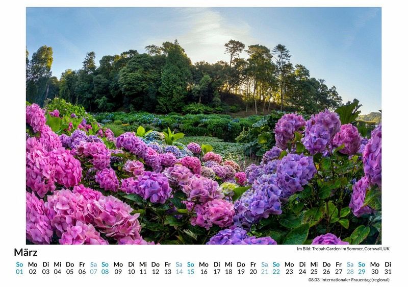 Entdecken Sie die atemberaubende Schönheit von Trebah Garten in Cornwall mit unserem exklusiven Monats-Wandkalender! Lassen Sie sich Monat für Monat von 12 sorgfältig ausgewählten Motiven verzaubern, die die üppige Pflanzenwelt und die malerischen Landschaften dieses einzigartigen Gartens einfangen. Gedruckt auf hochwertigem, lichtbeständigem Bilderdruckpapier, bringt dieser Kalender die Magie von Trebah direkt in Ihr Zuhause. Nachhaltig in Deutschland auf FSC-zertifiziertem Papier produziert, ist er nicht nur ein optisches Highlight, sondern auch umweltfreundlich. Perfekt als Geschenk oder für die eigene Wand - holen Sie sich ein Stück Cornwall nach Hause! Hochwertig Erleben Sie ein Jahr voller Eleganz mit unserem Premium-Fotokalender. Jedes der 12 Motive ist auf hochwertigem, lichtbeständigem Bilderdruckpapier gedruckt, um die Lebendigkeit jedes Bildes zu bewahren. Die robuste Spiralbindung gewährleistet Langlebigkeit und einfache Handhabung. Nachhaltig Unser Engagement für die Umwelt spiegelt sich in jedem Exemplar wider. Durch die Produktion auf Abruf reduzieren wir signifikant unseren Abfall. Wir verwenden ausschließlich umweltfreundliches, FSC-zertifiziertes Papier. Stolz gefertigt in Deutschland, achten wir bei unserer Logistik auf Klimaschutz, um unseren ökologischen Fußabdruck zu minimieren. Das ideale Geschenk Dieser Kalender ist das perfekte Präsent für jeden Anlass - ob Weihnachten, Geburtstage oder einfach als liebevolle Aufmerksamkeit zwischendurch. Geeignet für Freunde, Familie, Kinder und Erwachsene gleichermaßen, bereichert er jedes Zuhause mit seiner Vielfalt und Schönheit, unabhängig vom Alter der Beschenkten.