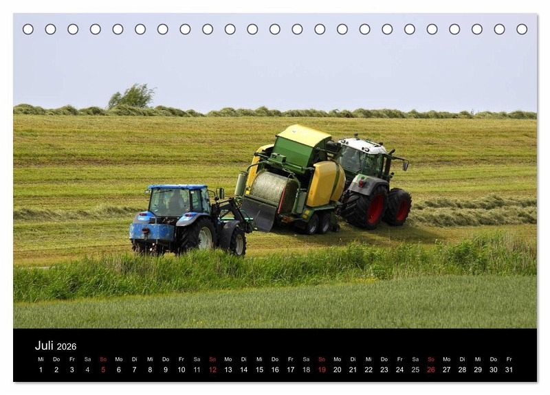 Die großen Flächen werden überall mit den verschiedensten Maschinen bearbeitet. An der Küste wird auch die Deichpflege mit landwirtschaftlichen Maschinen bewältigt. Dieser Kalender von rolf pötsch zeigt die Arbeit in der Landwirtschaft und die Deichpflege mit eindrucksvollen Fotos.