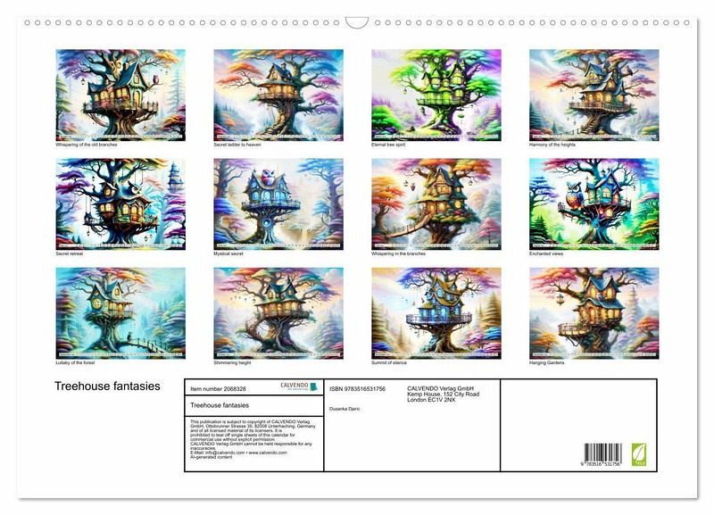 QUALITY - High-quality photo calendar with 12 beautiful images on light-resistant paper, robust spiral binding with hanger.SUSTAINABLE - Significant waste reduction due to print-on-demand production, environmentally friendly FSC-certified paper, produced in the UK, climate-conscious logistical processes.PERFECT GIFT - calendars for friends and family, for children, all ages and all occasions, from Christmas to birthdays and everything in between.LOTS OF CHOICE - Wall calendars in different sizes (DIN A4 and DIN A3), for any topic and personal taste, featuring photography, painting and illustrations.Living nature as tree houses., author: Dusanka Djeric