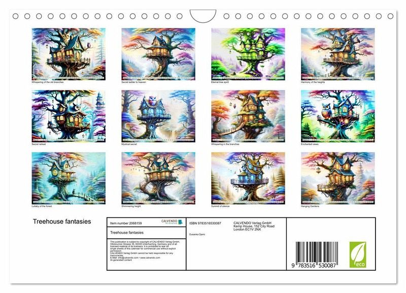 QUALITY - High-quality photo calendar with 12 beautiful images on light-resistant paper, robust spiral binding with hanger.SUSTAINABLE - Significant waste reduction due to print-on-demand production, environmentally friendly FSC-certified paper, produced in the UK, climate-conscious logistical processes.PERFECT GIFT - calendars for friends and family, for children, all ages and all occasions, from Christmas to birthdays and everything in between.LOTS OF CHOICE - Wall calendars in different sizes (DIN A4 and DIN A3), for any topic and personal taste, featuring photography, painting and illustrations.Living nature as tree houses., author: Dusanka Djeric