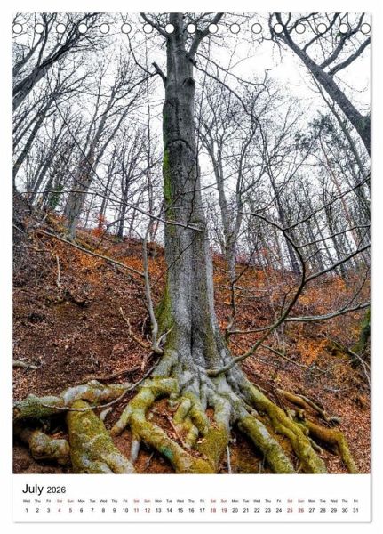 Trees - Living Giants invites you into the timeless world of mighty trunks, gnarled roots, and moss-covered bark. From monumental beeches and pines to twisted, fairytale-like forms, this calendar captures the silent strength and quiet magic of trees that have witnessed centuries. Covered in moss, embraced by ferns, shaped by weather and time - each tree tells a story of resilience, life, and mystery. A year-long tribute to the guardians of the forest.