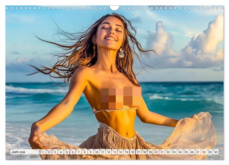 Sonne, Sand und Meer - dieser KI-generierte Kalender zeigt lebensfrohe, attraktive, erotische Frauen, die den Sommer in vollen Zügen genießen. Ob spielerisch in den Wellen, entspannt am Strand oder leicht bekleidet in der Gischt - jede Szene fängt das Gefühl von Freiheit, Wärme und Leichtigkeit ein. Ein stimmungsvoller Begleiter durch das Jahr für alle, die das Meer und die Magie des Sommers lieben.