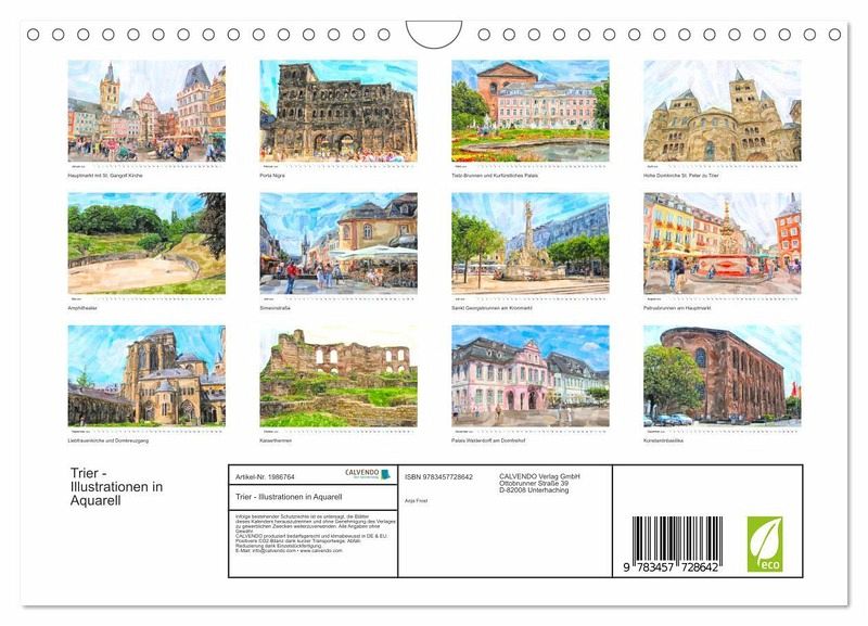 QUALITÄT - Hochwertiger Fotokalender mit 12 wunderschönen Motiven auf lichtbeständigem Bilderdruckpapier, robuste Spiralbindung mit Aufhängebügel.NACHHALTIG - deutliche Abfallreduzierung durch bedarfsgerechte Einzelstückfertigung, umweltfreundliches FSC-zertifiziertes Papier, Produktion in Deutschland, klimabewusste Logistik.PERFEKTES GESCHENK - Kalender für Freunde und Familie, für Kinder und Erwachsene, jung und alt, zu Weihnachten, Geburtstag oder zwischendurch.VIELFALT - Bildkalender in verschiedenen Formaten, z.B. DIN A5, DIN A4, DIN A3 sowie DIN A2. Ob Naturmotiv, Gemälde oder Fotos, ideal für ein persönliches Wohlfühlambiente.Malerische Stadtansichten von Trier von Autor(in): Anja Frost