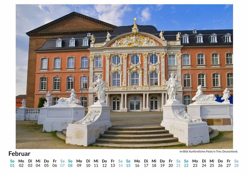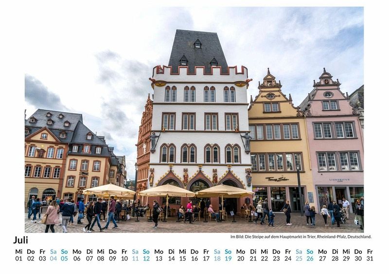 Entdecken Sie die älteste Stadt Deutschlands in all ihrer Pracht! Unser hochwertiger Trier-Wandkalender entführt Sie Monat für Monat zu den beeindruckendsten Sehenswürdigkeiten dieser geschichtsträchtigen Stadt. Von der majestätischen Porta Nigra bis hin zu den malerischen Moselansichten - jedes der 12 liebevoll ausgewählten Motive fängt den einzigartigen Charme Triers ein. Gedruckt auf FSC-zertifiziertem, lichtbeständigem Bilderdruckpapier, garantiert dieser Kalender nicht nur brillante Farben, sondern auch Nachhaltigkeit. Perfekt für Ihr Zuhause oder als Geschenk für Kultur- und Geschichtsliebhaber. Holen Sie sich ein Stück Trier an Ihre Wand! Hochwertig Erleben Sie ein Jahr voller Eleganz mit unserem Premium-Fotokalender. Jedes der 12 Motive ist auf hochwertigem, lichtbeständigem Bilderdruckpapier gedruckt, um die Lebendigkeit jedes Bildes zu bewahren. Die robuste Spiralbindung gewährleistet Langlebigkeit und einfache Handhabung. Nachhaltig Unser Engagement für die Umwelt spiegelt sich in jedem Exemplar wider. Durch die Produktion auf Abruf reduzieren wir signifikant unseren Abfall. Wir verwenden ausschließlich umweltfreundliches, FSC-zertifiziertes Papier. Stolz gefertigt in Deutschland, achten wir bei unserer Logistik auf Klimaschutz, um unseren ökologischen Fußabdruck zu minimieren. Das ideale Geschenk Dieser Kalender ist das perfekte Präsent für jeden Anlass - ob Weihnachten, Geburtstage oder einfach als liebevolle Aufmerksamkeit zwischendurch. Geeignet für Freunde, Familie, Kinder und Erwachsene gleichermaßen, bereichert er jedes Zuhause mit seiner Vielfalt und Schönheit, unabhängig vom Alter der Beschenkten.