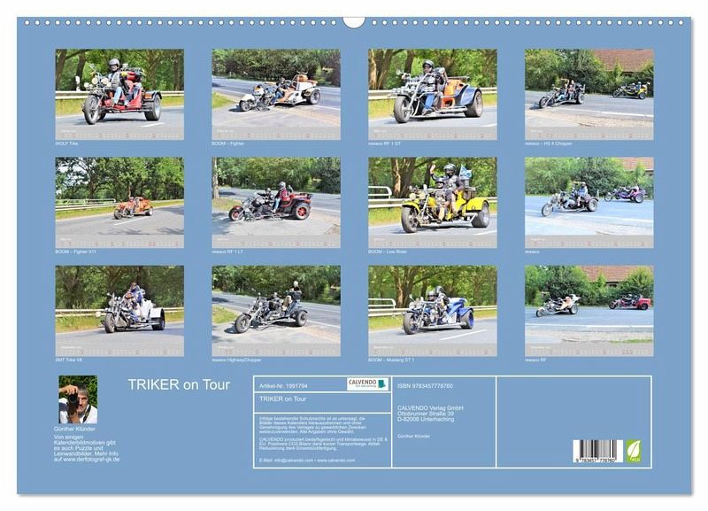 Eine TRIKER - Story fotografisch dokumentiert.Einzigartig das Fahrgefühl und einzigartig die TRIKER-Szene, ein leichtes Dahingleiten im bequemen Fahrersessel, den Fahrwind spüren auf drei Rädern, diese Eindrücke vermittelt der Fotograf Günther Klünder mit diesen grandiosen Aufnahmen.