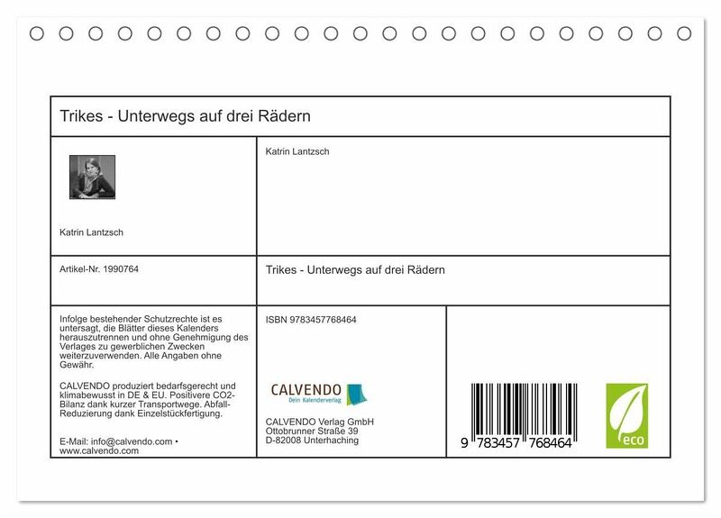 QUALITÄT - Hochwertiger Fotokalender mit 12 wunderschönen Motiven auf lichtbeständigem Bilderdruckpapier, robuste Spiralbindung.NACHHALTIG - deutliche Abfallreduzierung durch bedarfsgerechte Einzelstückfertigung, umweltfreundliches FSC-zertifiziertes Papier, Produktion in Deutschland, klimabewusste Logistik.PERFEKTES GESCHENK - Kalender für Freunde und Familie, für Kinder und Erwachsene, jung und alt, zu Weihnachten, Geburtstag oder zwischendurch.VIELFALT - Bildkalender in verschiedenen Formaten, z.B. DIN A5, DIN A4, DIN A3 sowie DIN A2. Ob Naturmotiv, Gemälde oder Fotos, ideal für ein persönliches Wohlfühlambiente.Ein Motorisiertes Dreirad von Autor(in): Kati Lantzsch