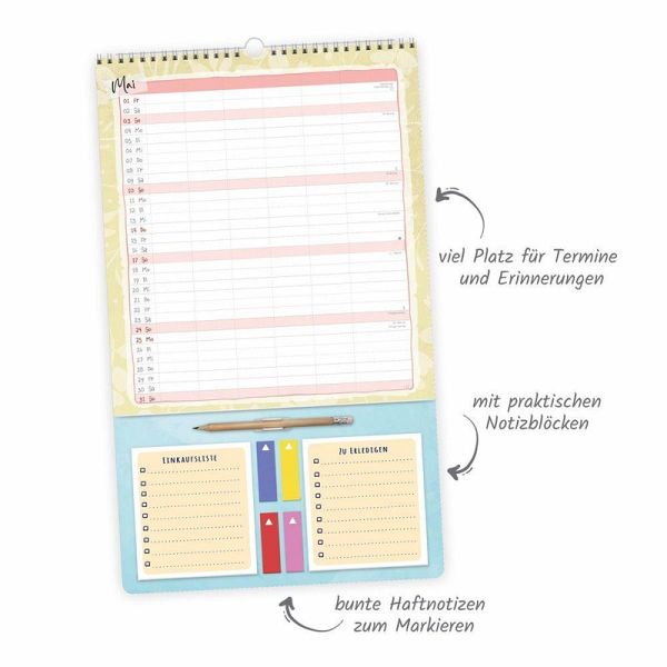 Damit keiner sagen kann, er hätte nichts gewusst! Der Familienkalender zeigt alle wichtigen Termine der gesamten Familie auf einen Blick. So wird der Kalender ein unverzichtbarer Alltagshelfer im aktiven Familienleben. Wie jedes Jahr hilft der Familienkalender auch in den kommenden zwölf Monaten, Pläne und Termine im Griff zu behalten. Mit freundlichen Farben, dezenten Grafiken, dem übersichtlichen Kalendarium und jeder Menge Platz für Notizen, Termine oder Erinnerungen ist er ein perfekter Begleiter durch den Familienalltag. So kommt Ordnung in die Pläne aller Familienmitglieder und nichts gerät durcheinander.