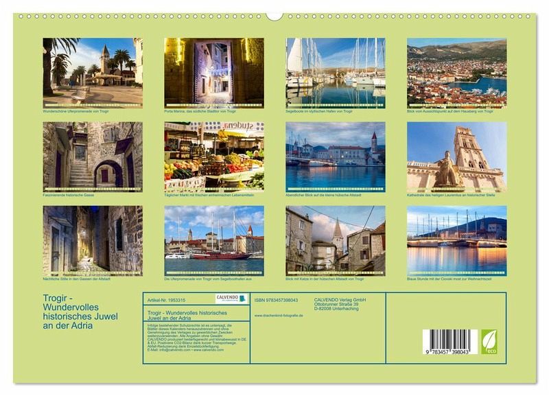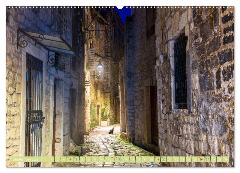 Trogir ist eine historische Stadt mit Geschichte seit der Antike an der Adriaküste in der Gespanschaft Split-Dalmatien, Kroatien. Sie liegt auf einer kleinen Insel zwischen dem kroatischen Festland und der Insel Ciovo. Trogir ist 27 Kilometer westlich der Stadt Split gelegen. Die Stadt hat eine Bevölkerung von etwa 12.393 Einwohnern. Seit 1997 ist das historische Zentrum von Trogir aufgrund seiner venezianischen Architektur in die UNESCO-Liste des Weltkulturerbes aufgenommen. Es gibt eine sehr gute Anbindung an den regionalen, wie überregionalen Busverkehr. Dieser Kalender ist Teil der Reihe Balkankalender von drachenkind-fotografie und entstand auf einer Balkan Rucksackreise 2023/24.