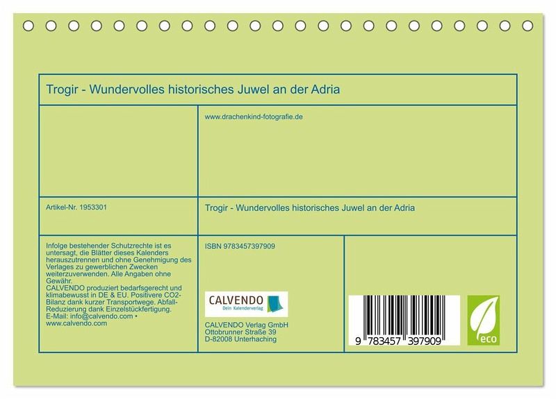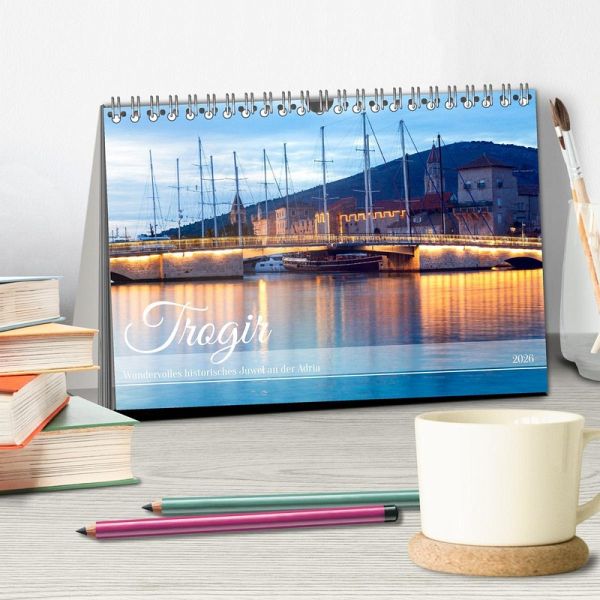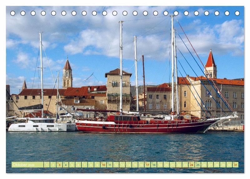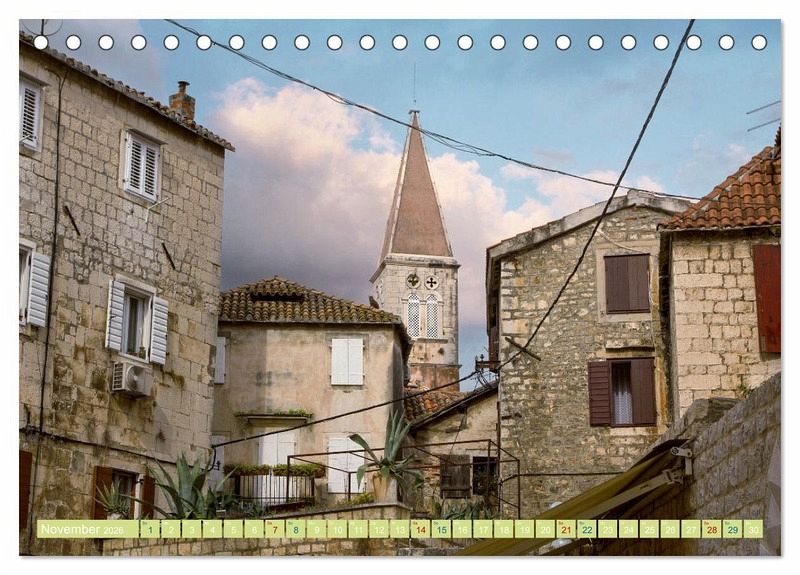 Trogir ist eine historische Stadt mit Geschichte seit der Antike an der Adriaküste in der Gespanschaft Split-Dalmatien, Kroatien. Sie liegt auf einer kleinen Insel zwischen dem kroatischen Festland und der Insel Ciovo. Trogir ist 27 Kilometer westlich der Stadt Split gelegen. Die Stadt hat eine Bevölkerung von etwa 12.393 Einwohnern. Seit 1997 ist das historische Zentrum von Trogir aufgrund seiner venezianischen Architektur in die UNESCO-Liste des Weltkulturerbes aufgenommen. Es gibt eine sehr gute Anbindung an den regionalen, wie überregionalen Busverkehr. Dieser Kalender ist Teil der Reihe Balkankalender von drachenkind-fotografie und entstand auf einer Balkan Rucksackreise 2023/24.
