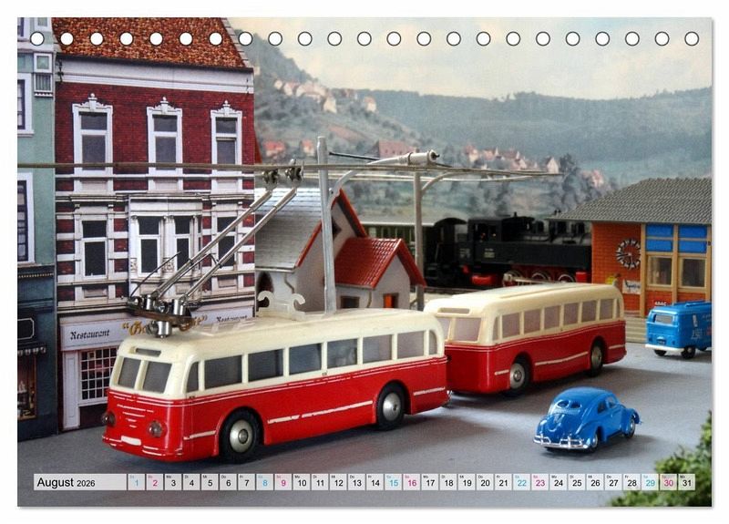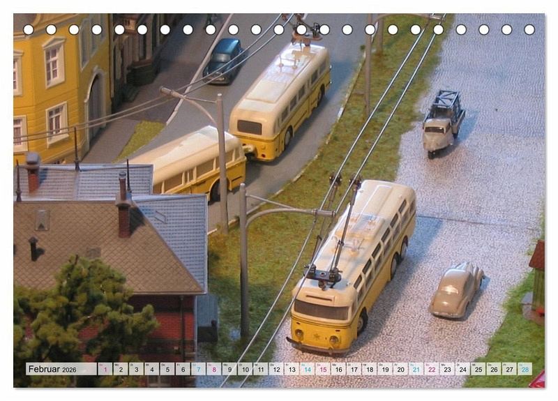 Der Trolley-Bus war einst das Sahnehäubchen auf den Modellbahnanlagen der 50er und 60er Jahre. Das Zusammenspiel zwischen Schiene und Straße faszinierte jeden Betrachter. Mit zwölf nostalgischen Aufnahmen erleben Sie jeden Monat das Flair der Wirtschaftswunderzeit, als der Trolley-Bus H0 im Kinderzimmer seine Runden drehte.