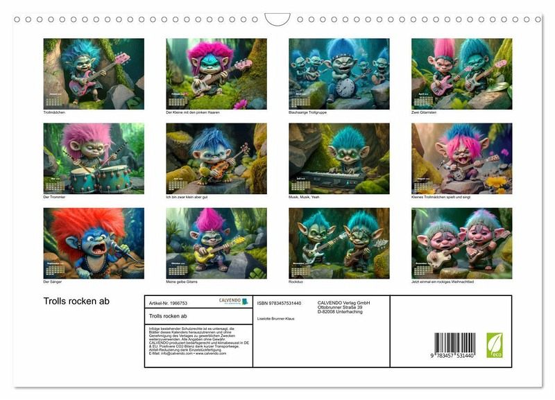 Jeder Monat zeigt die Trolls in ihrer ganzen Pracht - von den diversen wilden Gitarren bis hin zum energiegeladenen Trommler. Mit ihrem charismatischen Auftreten und ihrer humorvollen Art wird die Band schnell zu Ihrem neuen Lieblings-Formation.